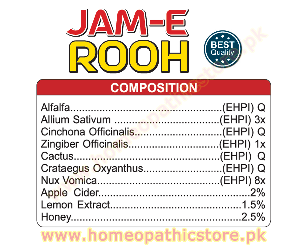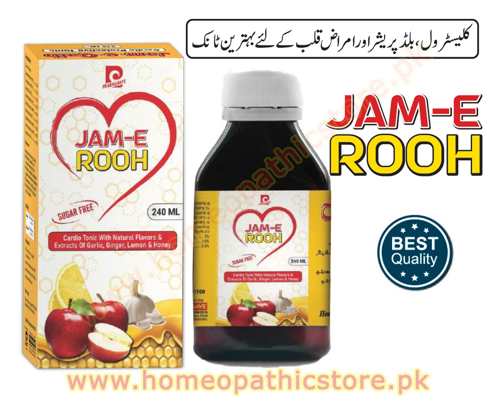 Jam-e-Rooh is a natural herbal tonic specially formulated for heart health. It helps in reducing cholesterol levels, maintaining normal blood pressure, and supporting overall cardiovascular wellness. Regular use improves blood circulation, strengthens the heart, and protects against heart-related disorders.