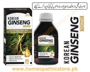 کوریائی جینسنگ شربت ایک قدرتی مردانہ ٹانک ہے جو توانائی بڑھانے، قبل از وقت بڑھاپے سے بچانے اور تولیدی افعال کو بہتر بنانے کے لیے تیار کیا گیا ہے۔ یہ جنسی کمزوری، کمزور طاقت اور منی کی کمی کو دور کرتا ہے اور مردوں کی مجموعی صحت اور توانائی کو بڑھاتا ہے۔ باقاعدہ استعمال سے قوتِ مدافعت مضبوط ہوتی ہے، برداشت بڑھتی ہے اور تولیدی صحت بہتر رہتی ہے۔