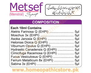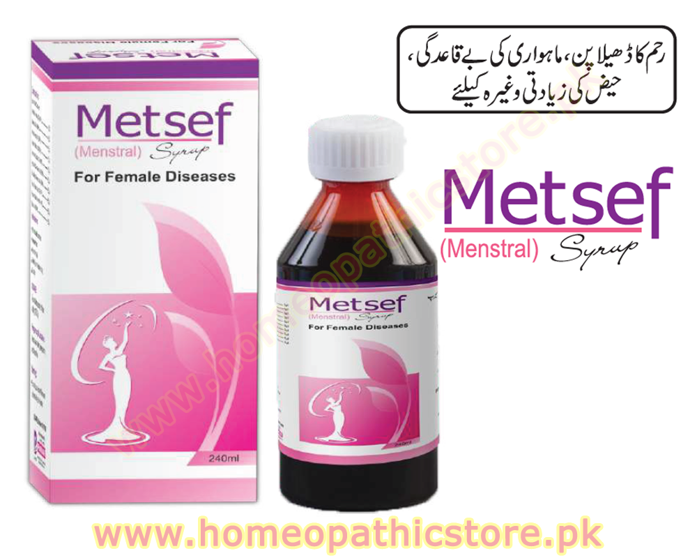 Metsef Menstral Syrup is a natural women’s health tonic specially formulated to regulate menstrual cycles and support uterine health. It helps reduce uterine weakness, controls excessive menstrual flow, and promotes overall reproductive wellness. Regular use strengthens the uterus, balances hormonal function, and improves energy levels in women.