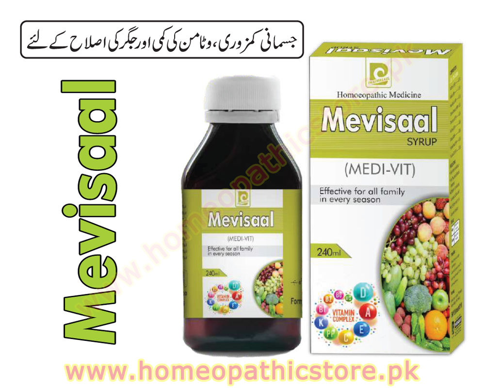 Mevisaal Syrup is a natural tonic designed to improve physical strength, replenish essential vitamins, and support liver health. It helps overcome weakness, enhances immunity, promotes energy levels, and supports overall body wellness. Regular use strengthens the body, improves vitality, and maintains proper liver function.