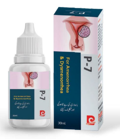 P-7 For Amenorrhea & Dysmenorrhea is a natural women’s health tonic formulated to regulate menstrual cycles and relieve menstrual discomfort. It helps in managing irregular periods, reduces pain and cramps, and supports overall reproductive health. Regular use promotes hormonal balance, strengthens the uterus, and improves energy and vitality in women.